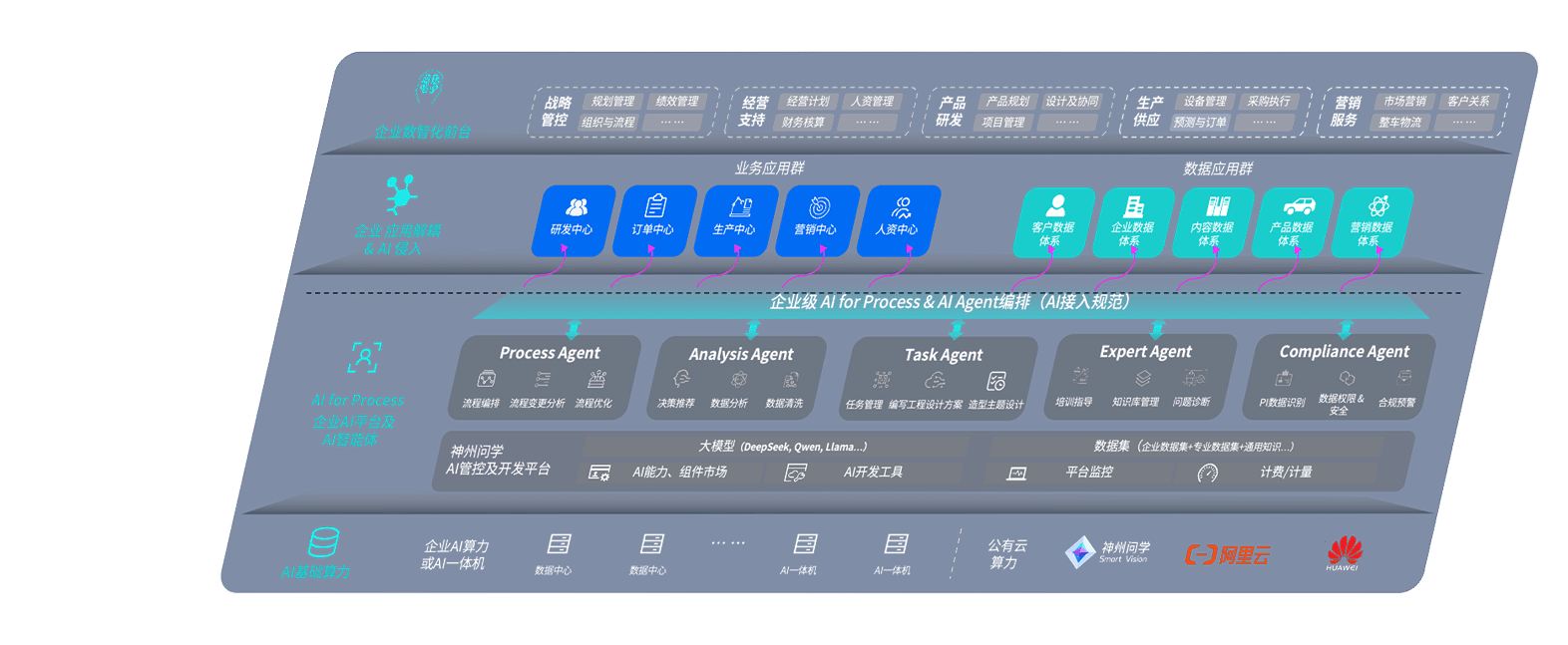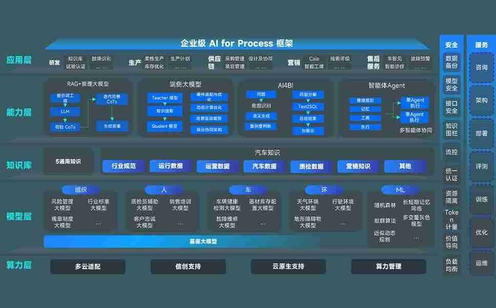 端到端的一站式AI工作空间深度融合了从企业战略规划到日常经营的全流程业务板块,,,定向解决车企内部领域多、、、部门多、、、、链条长、、场景碎片化等难题,,,,支持车企快速构建以AI为核心的生产力写作体系,,,实现任务执行与AI能力的无缝集成与交互